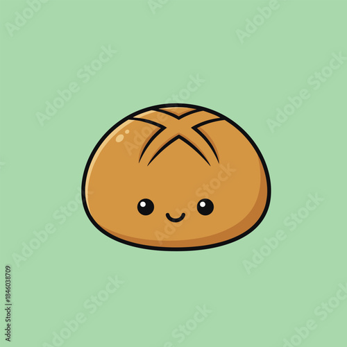 Fototapeta premium Adorable Bread Roll Character with Smiling Face and Cute Eyes.
