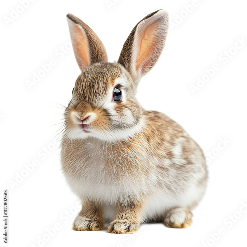 Fototapeta premium Adorable Brown and White Rabbit Sitting on White Background