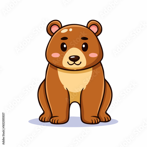 Obraz premium Adorable Brown Bear Cub Cartoon Character Sitting and Smiling, Isolated on...