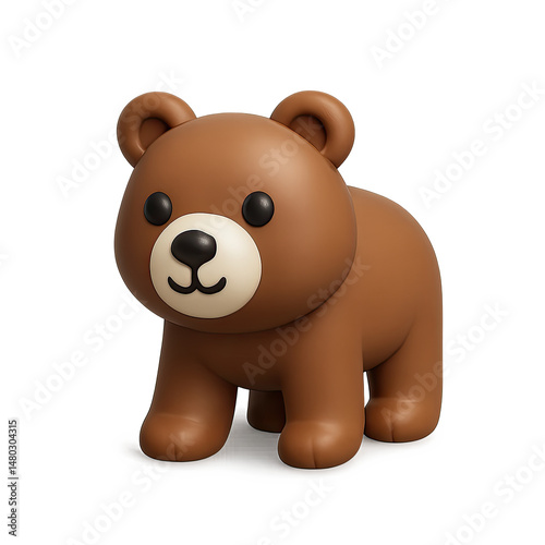 © procreation, Naklejka premium Adorable Brown Bear Cub 3D Render with Transparent Background