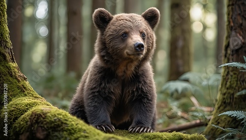 © ลลิดา ไชยศรีษะ, Obraz premium Adorable Brown Bear Cub in Forest