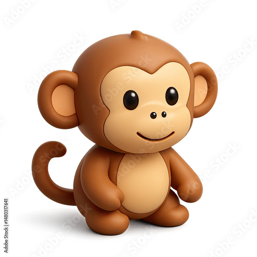 © procreation, Fototapeta premium Adorable Brown Cartoon Monkey 3D Rendering on Transparent Background