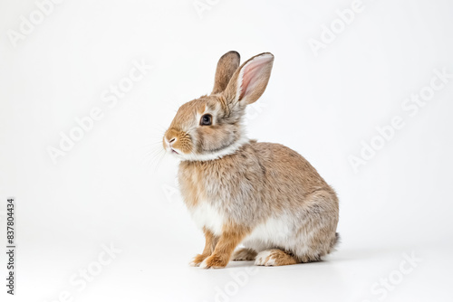 © Rysak, Obraz premium Adorable Brown Rabbit Sitting on White Background