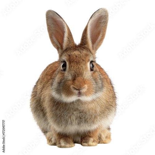 © Vibu design gallery, Fototapeta premium Adorable brown rabbit with big ears, sitting and looking directly at the camera. background removed