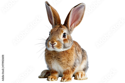 Fototapeta premium Adorable brown rabbit with long ears, sitting and looking at the camera. background removed