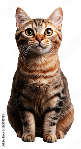 © Flowaiart, Obraz premium Adorable Brown Tabby Cat Sitting with Expressive Eyes on Transparent Background