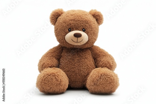 Fototapeta premium Adorable Brown Teddy Bear Sitting on White Background