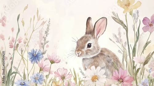 Obraz premium Adorable Bunny Amidst a Spring Meadow Watercolor Painting