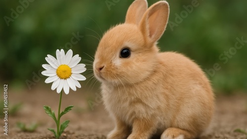 © Rawpixel.com, Fototapeta premium Adorable bunny beside daisy flower.