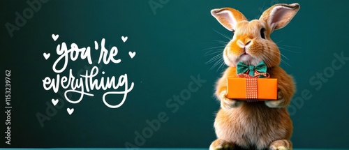 © Fernando, Obraz premium Adorable Bunny Holding Gift, Youre Everything Valentines Day Card