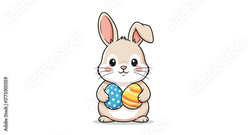 Obraz premium Adorable bunny illustration holding colorful easter eggs perfect for festive...