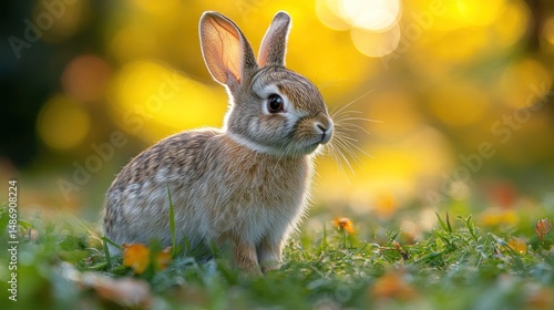 © Ari, Fototapeta premium Adorable Bunny in Autumn Meadow: A Golden Hour Portrait