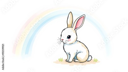 © Chalermrach, Obraz premium Adorable bunny on rainbow watercolor background illustration, art, background
