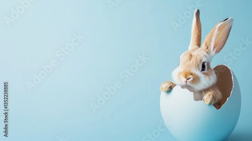 © Blueloner, Obraz premium Adorable Bunny Rabbit Emerging from Easter Egg Shell on Blue Background