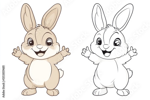 Fototapeta premium Adorable bunny rabbit illustrations, perfect for coloring. One colored, one outlined