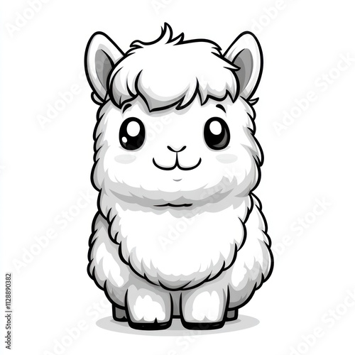 Naklejka premium Adorable cartoon alpaca illustration, cute fluffy white baby llama, happy...