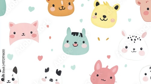 © arri, Fototapeta premium Adorable Cartoon Animal Faces Pattern Background