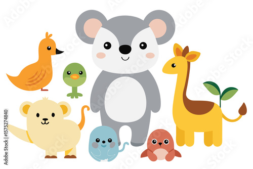 Naklejka premium Adorable Cartoon Animals Illustration Koala, Giraffe, Monkey and More