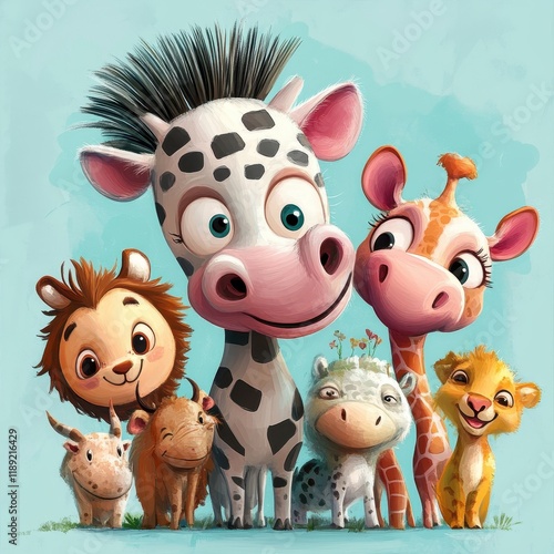 Naklejka premium Adorable Cartoon Animals Pose Together For A Fun Photo