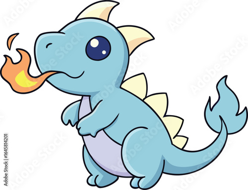 Fototapeta premium Adorable Cartoon Baby Dragon Breathing Fire