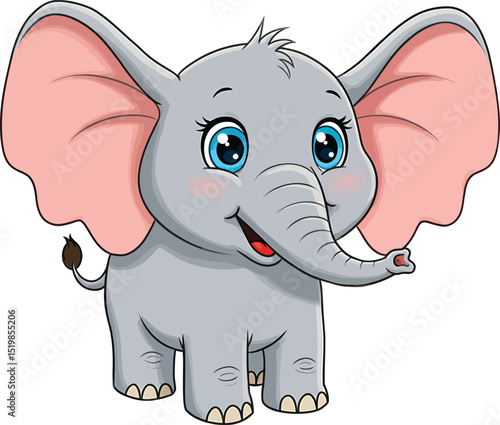 Naklejka premium Adorable Cartoon Baby Elephant Sitting and Smiling