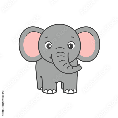 Naklejka premium Adorable Cartoon Baby Elephant with Pink Inner Ear