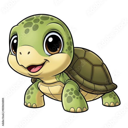 Fototapeta premium Adorable cartoon baby turtle with big eyes and a happy smile isolated on...