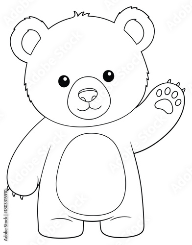 Fototapeta premium Adorable Cartoon Bear Cub Waving Outline Illustration Vector Graphic for...