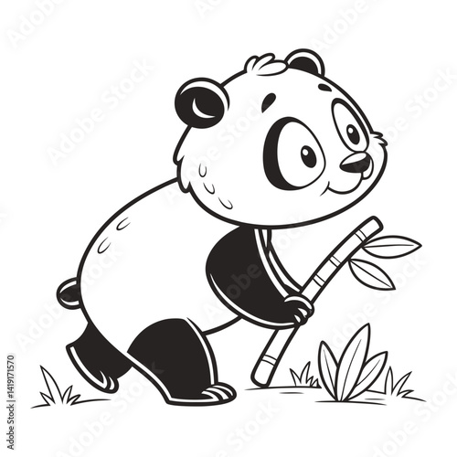 Obraz premium Adorable Cartoon Bear in a Forest Coloring Page Illustration