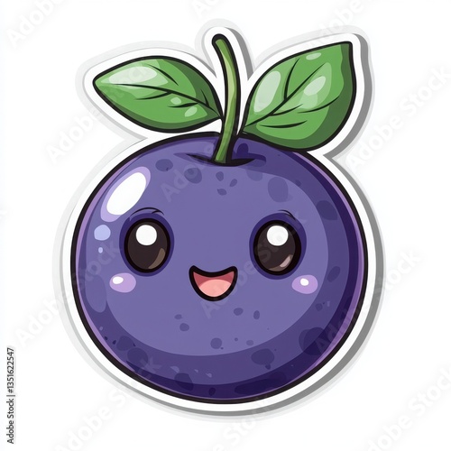 © Mohammed, Obraz premium Adorable cartoon blueberry with a cheerful face. Perfect for kids' designs or food illustrations.