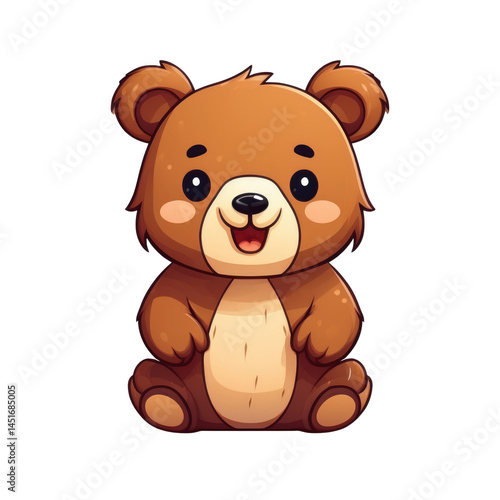 Obraz premium Adorable Cartoon Brown Bear Cub Sitting Happily A Cute Illustration Perfect for Children's Books and Products