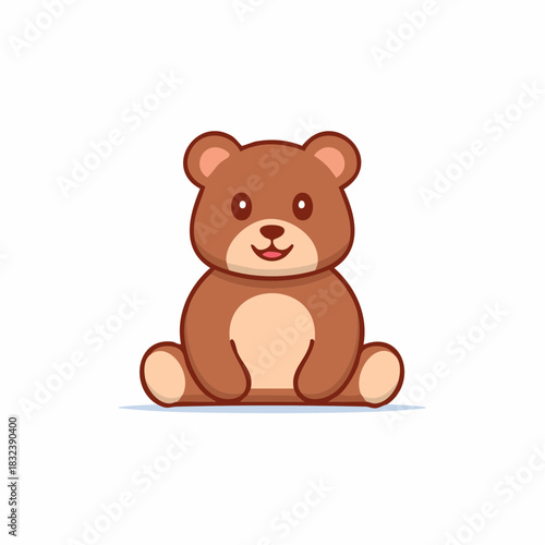 © Oleg, Obraz premium Adorable Cartoon Brown Teddy Bear Sitting Isolated on a White Background
