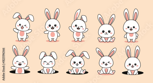 Fototapeta premium Adorable Cartoon Bunny Rabbits Collection for Design Elements and Easter Decorations