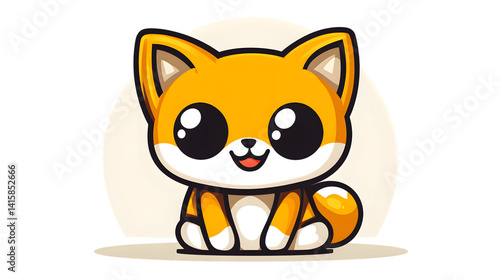 Obraz premium Adorable Cartoon Cat Character with Big Eyes and Playful Pose for Kids Design...