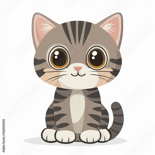 Fototapeta premium Adorable Cartoon Cat Cute Grey Tabby Kitten Illustration