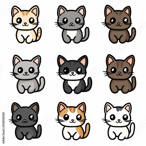 Fototapeta premium Adorable Cartoon Cat Icons Nine Cute Kitten Illustrations