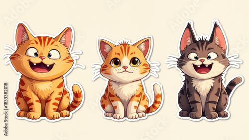 Obraz premium Adorable cartoon cat stickers with happy expressions on a light background