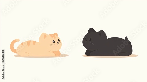 Fototapeta premium Adorable Cartoon Cats - Cute Black and Orange Kittens in Minimalist Style