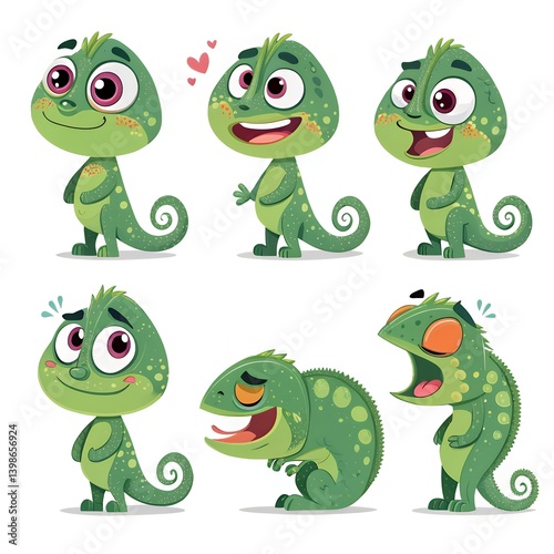Obraz premium Adorable Cartoon Chameleon Poses Illustrations Graphics Cute Reptile Characters