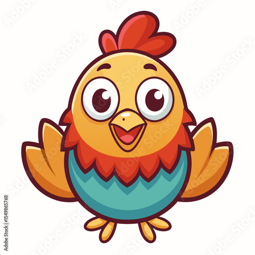 Fototapeta premium Adorable cartoon chicken character with big eyes and open wings