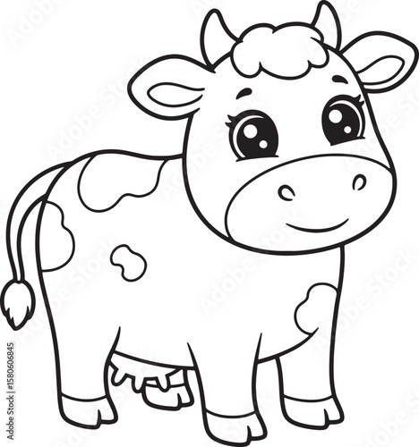 Fototapeta premium Adorable cartoon cow illustration with black outlines perfect for coloring books and designs