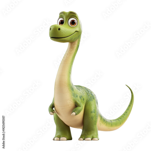 Fototapeta premium Adorable Cartoon Dinosaur Green Apatosaurus Cute Prehistoric Creature 3D...