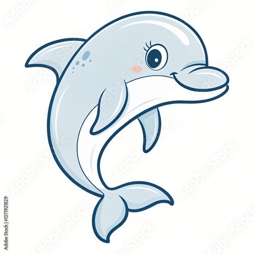 Fototapeta premium Adorable Cartoon Dolphin Illustration Leaping Aquatic Mammal Cute Marine...