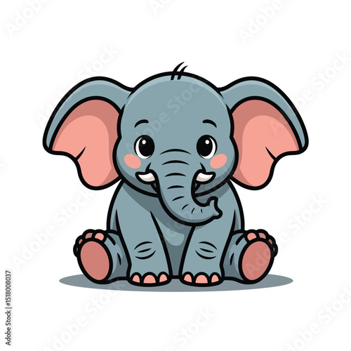 © Alvi, Fototapeta premium Adorable cartoon elephant illustration sitting on the ground with pink details and cheeks on a white background perfect for childrens designs