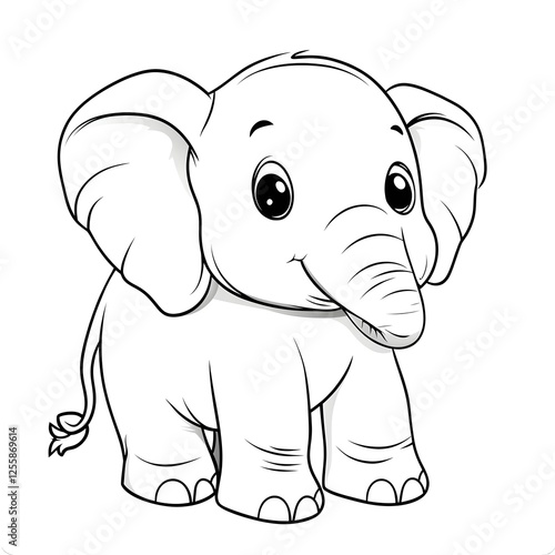 Fototapeta premium Adorable Cartoon Elephant with Blank Outline for Kids Coloring and Art Activity