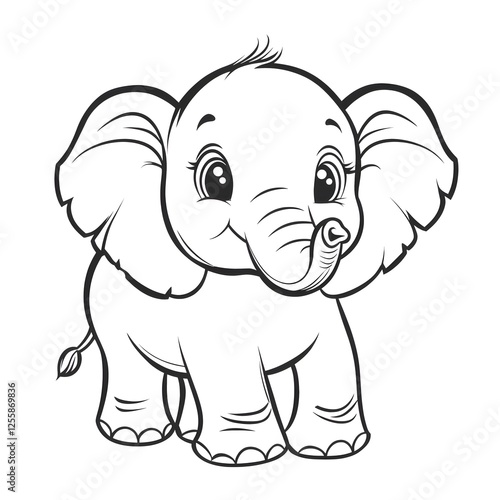 © LookChin AI, Fototapeta premium Adorable Cartoon Elephant with Blank Outline for Kids to Color