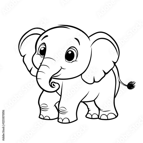 Fototapeta premium Adorable Cartoon Elephant with Blank Outline for Kids to Color