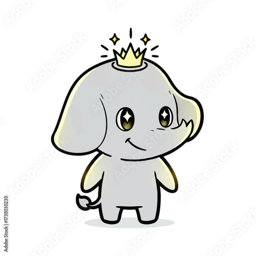 © danang, Obraz premium Adorable Cartoon Elephant with Crown A Fun and Whimsical Illustration
