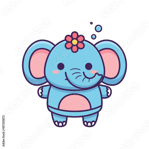 Fototapeta premium Adorable Cartoon Elephant with Flower