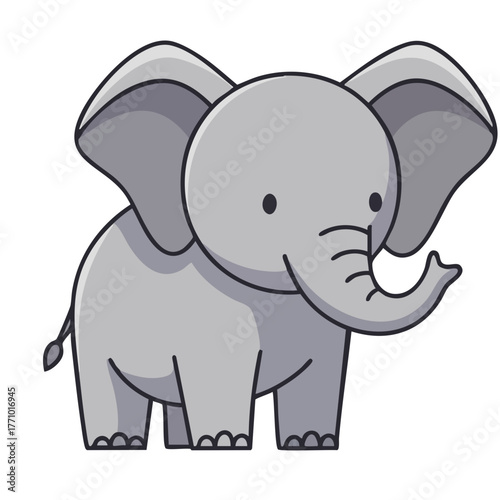 Naklejka premium Adorable Cartoon Elephant with Large Ears and Curled Trunk